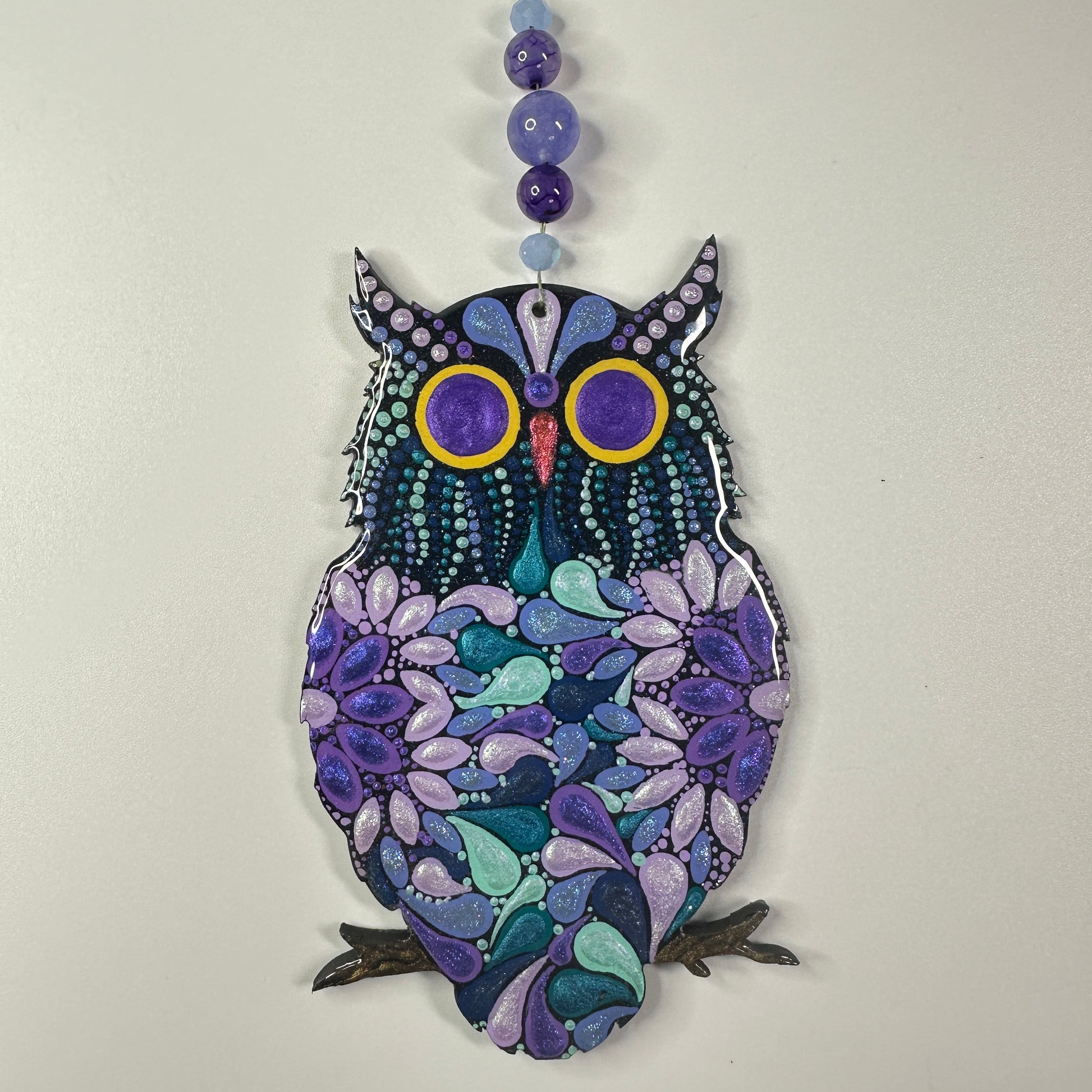 This hand painted ornament will be created just for you after purchase, making each piece truly one of a kind. Painted using the dot mandala method, it features Jenny’s signature shimmer and sparkle, which may not fully show in photos but will be beautifully visible in person.