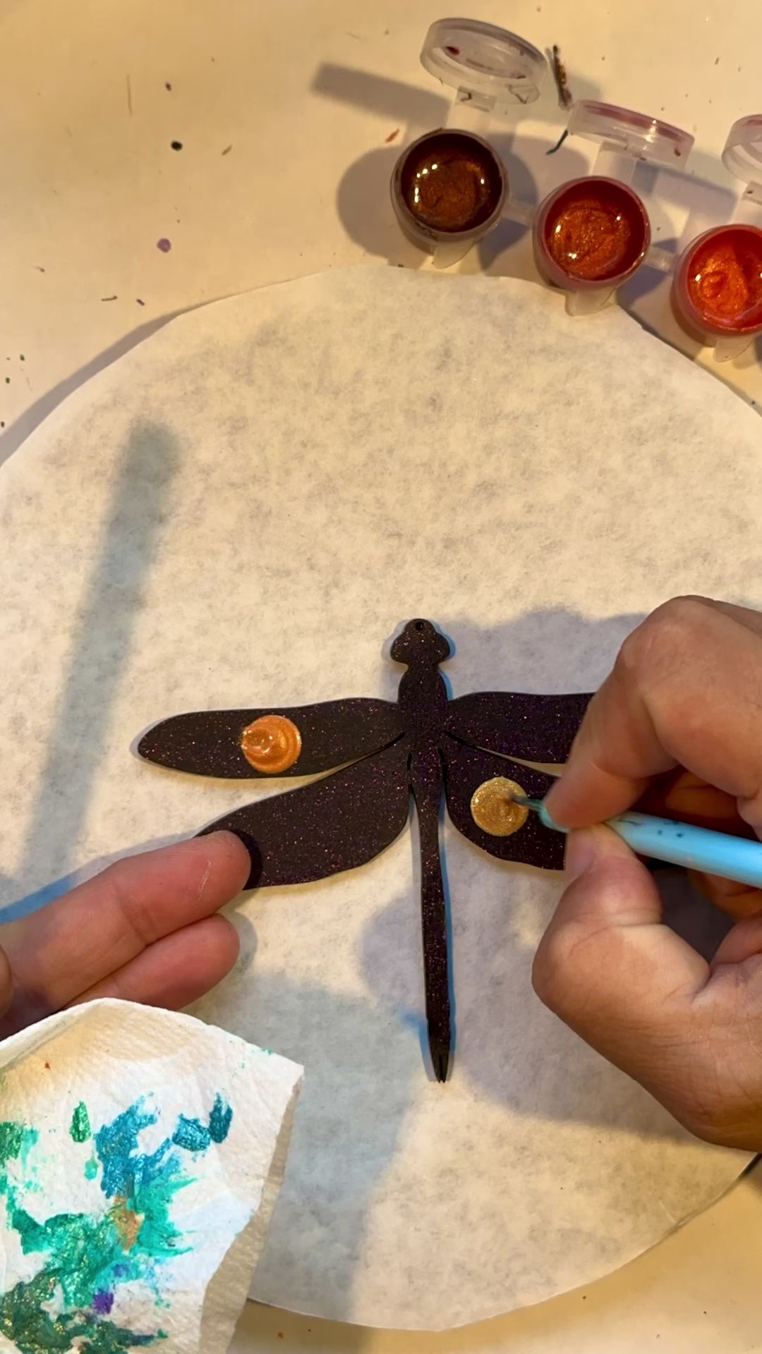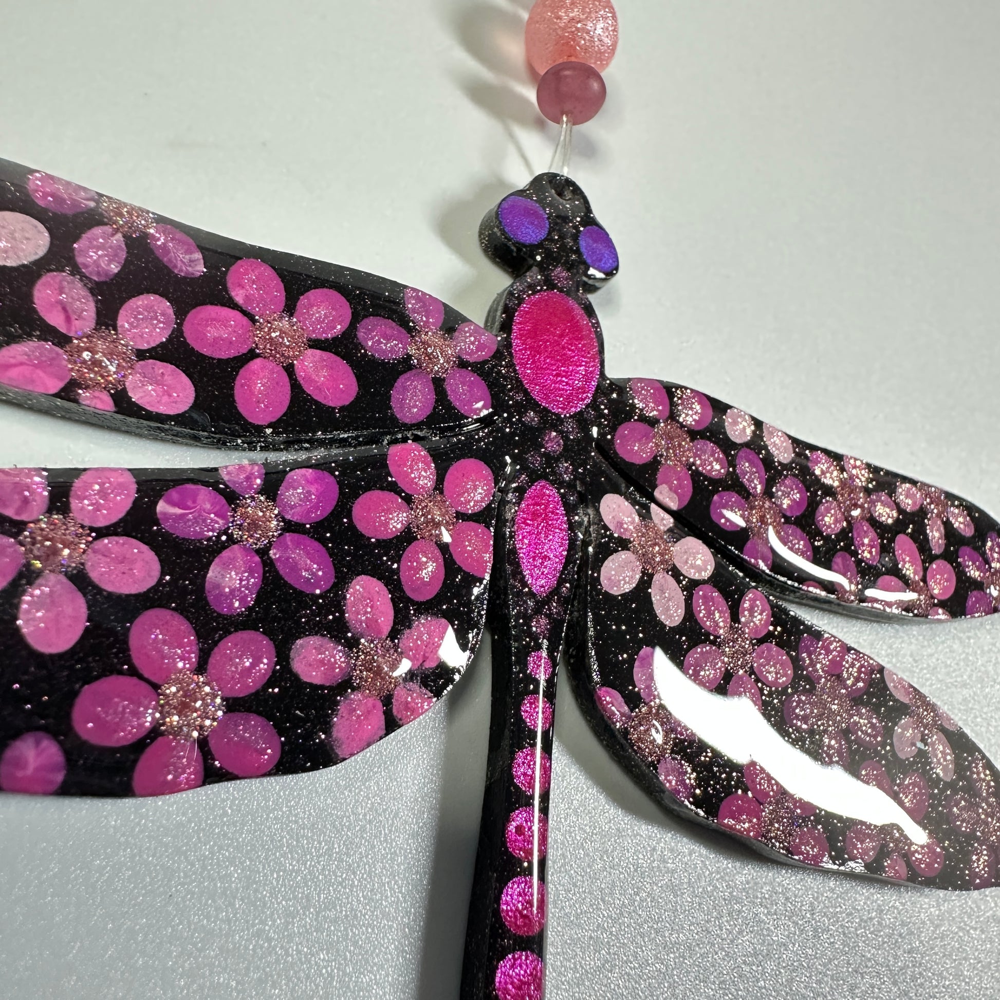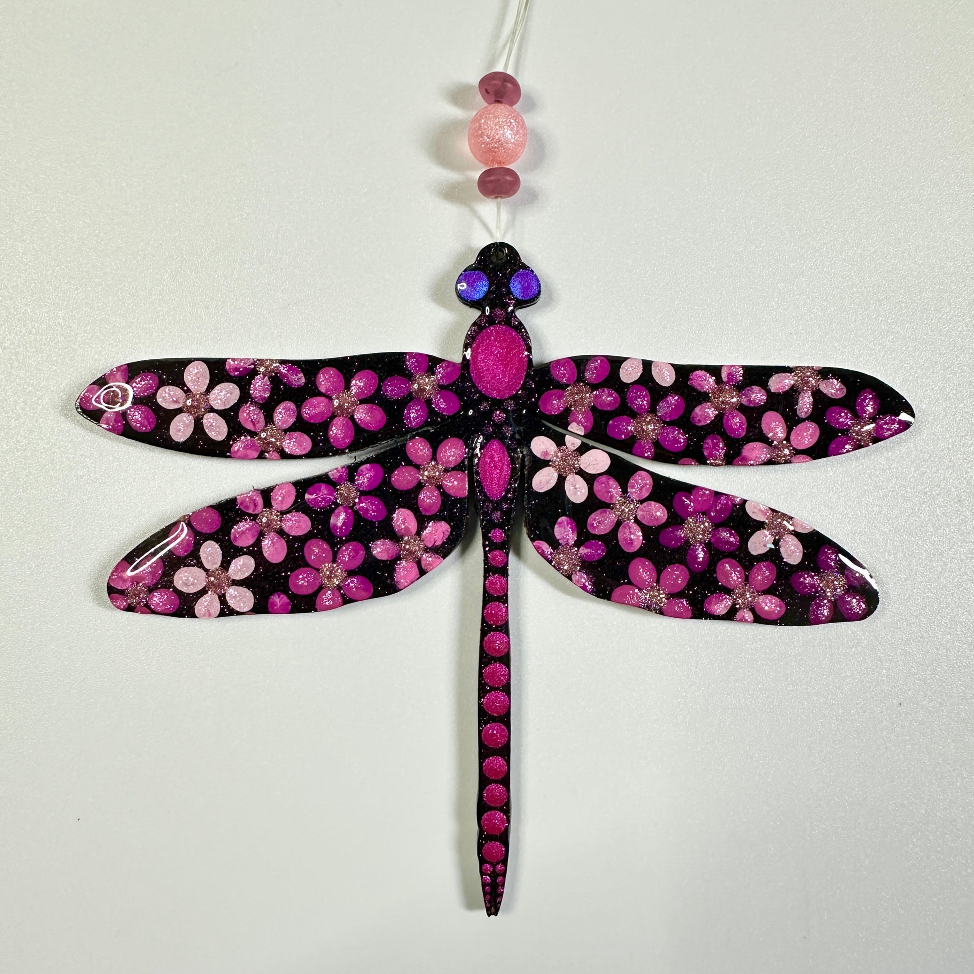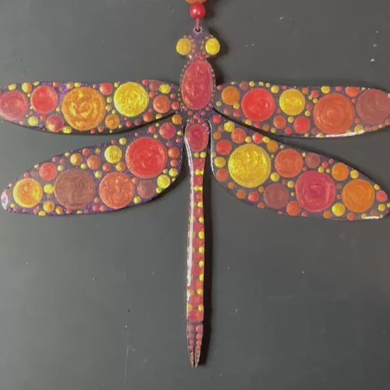 This hand painted dragonfly ornament will be created just for you after purchase, making each piece truly one of a kind. Painted using the cluster dot method, it features Jenny’s signature shimmer and sparkle, which may not fully show in photos but will be beautifully visible in person.